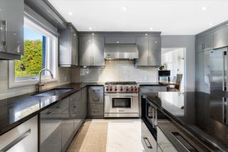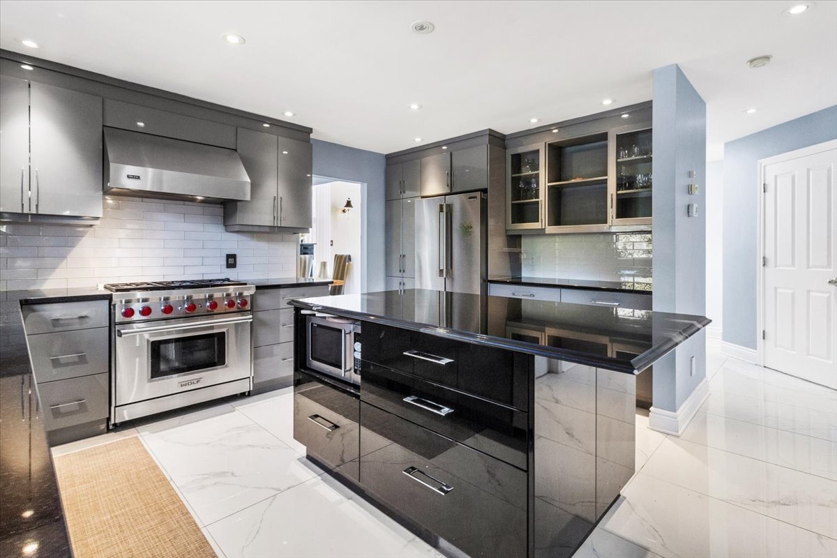high-end appliances, including a gas Wolf range, and a