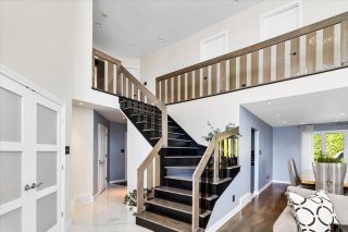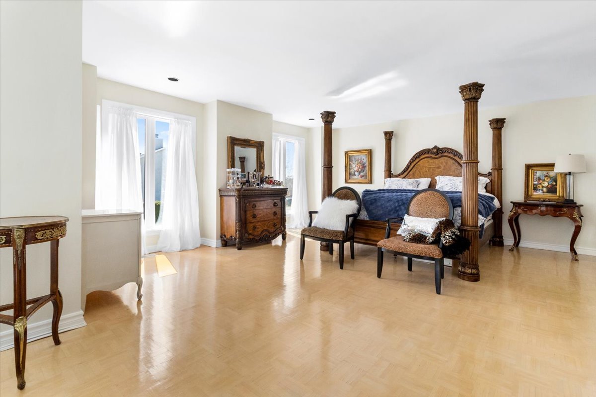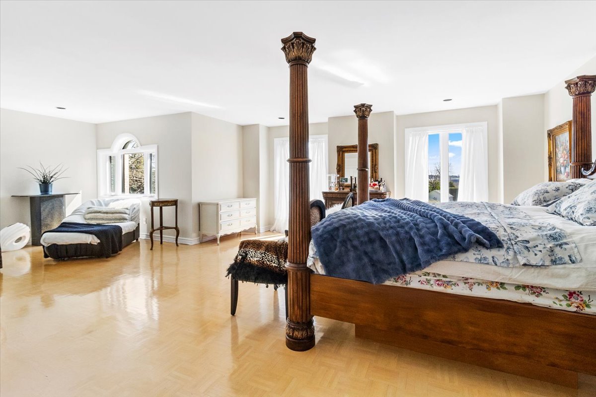 Upstairs, the impressive primary bedroom offers generous