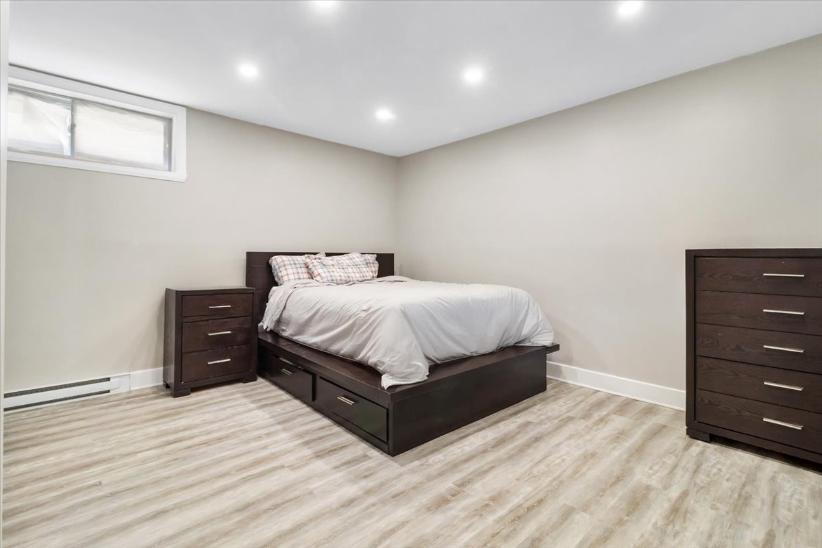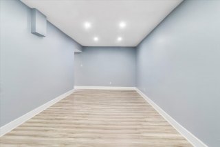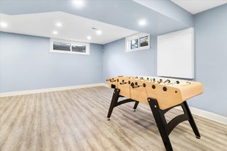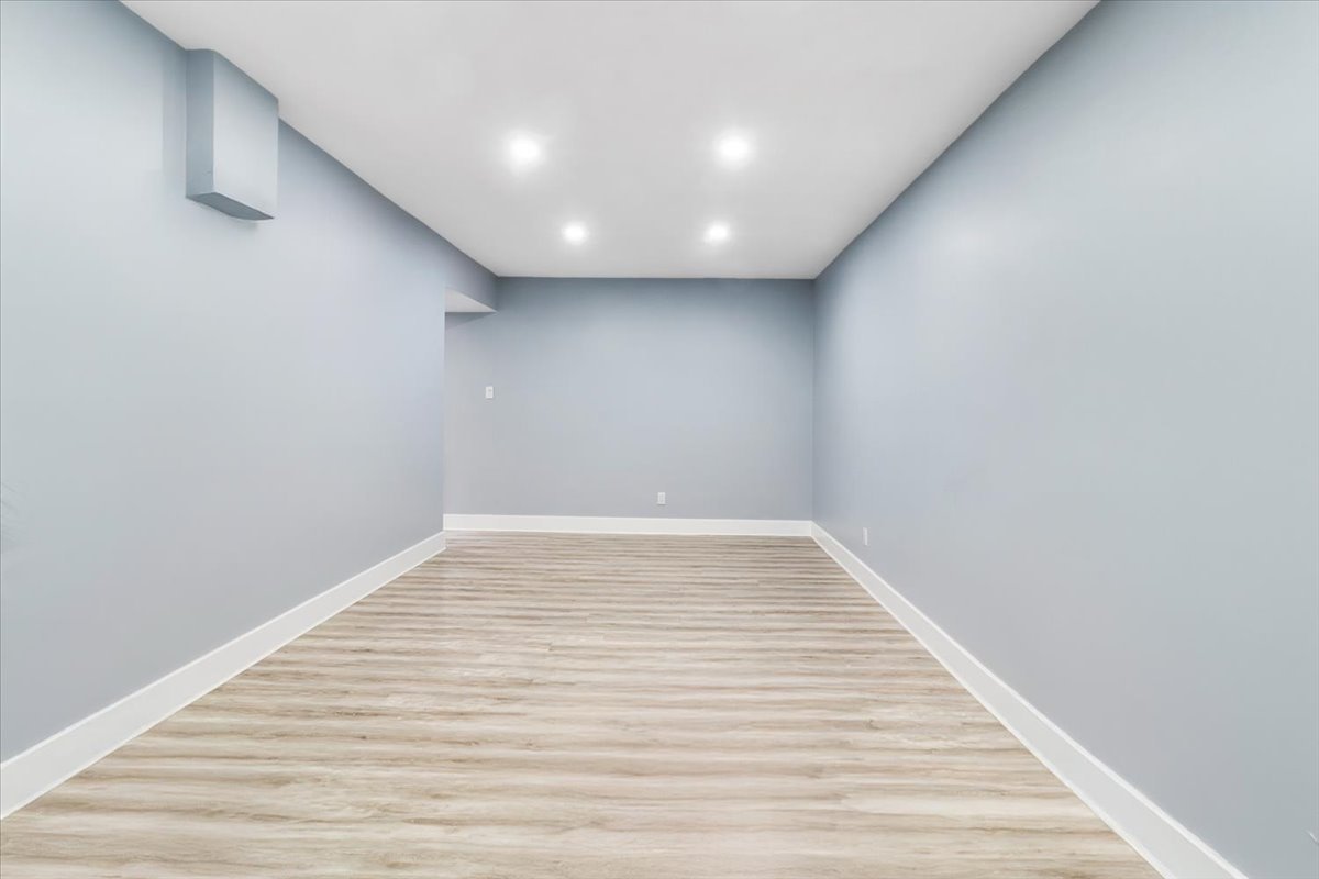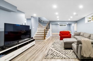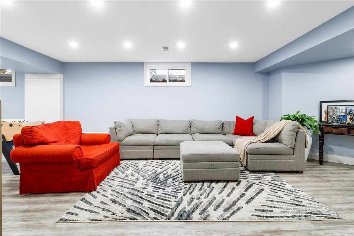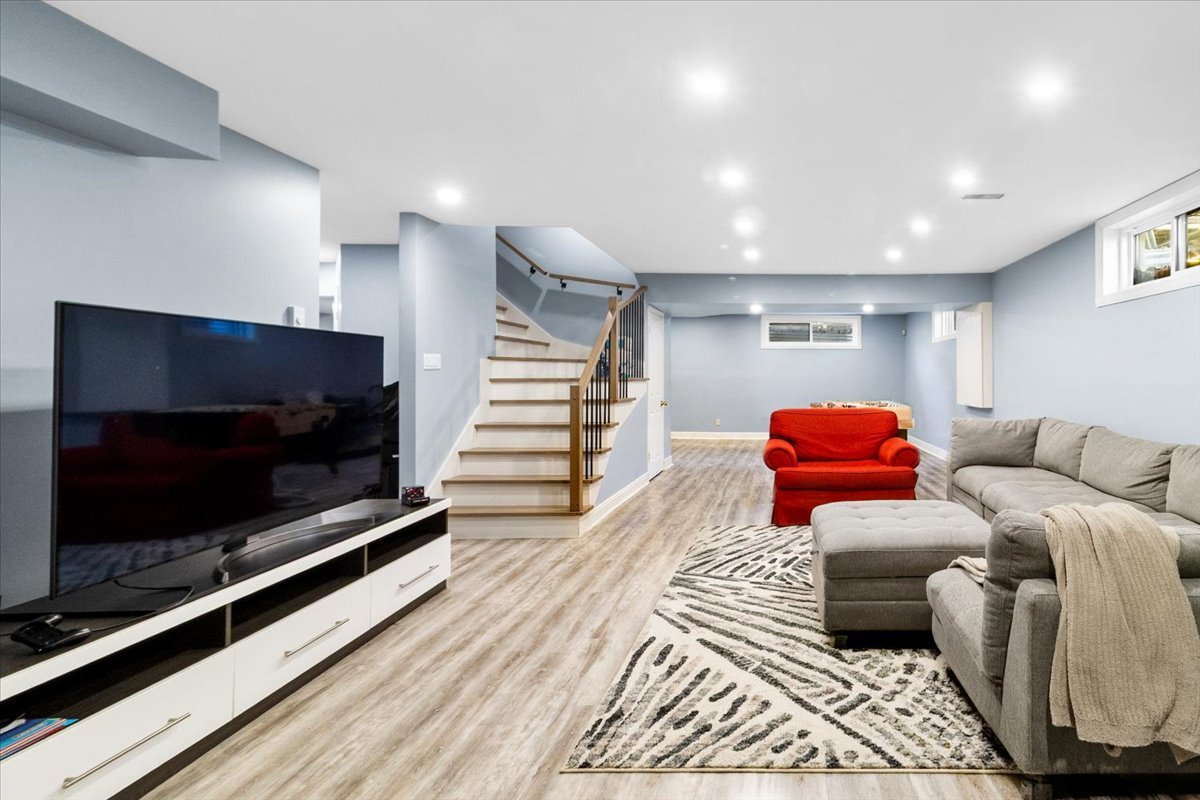 The basement features a large living room, an additional
